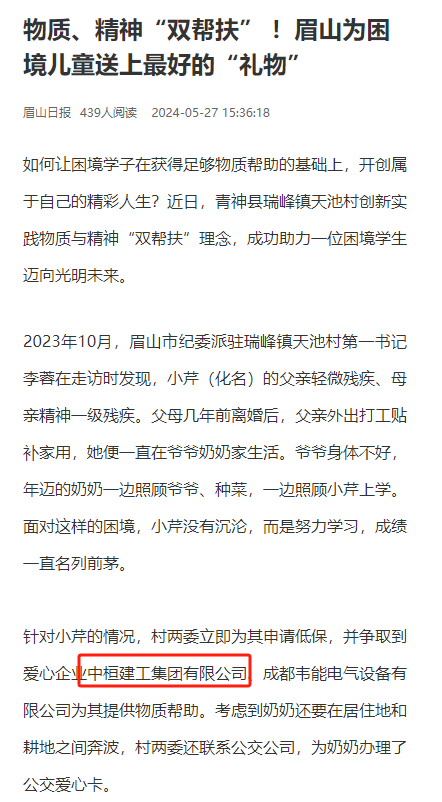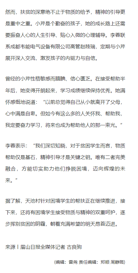 《眉山日報》報道我司為困境學生提供物資幫扶