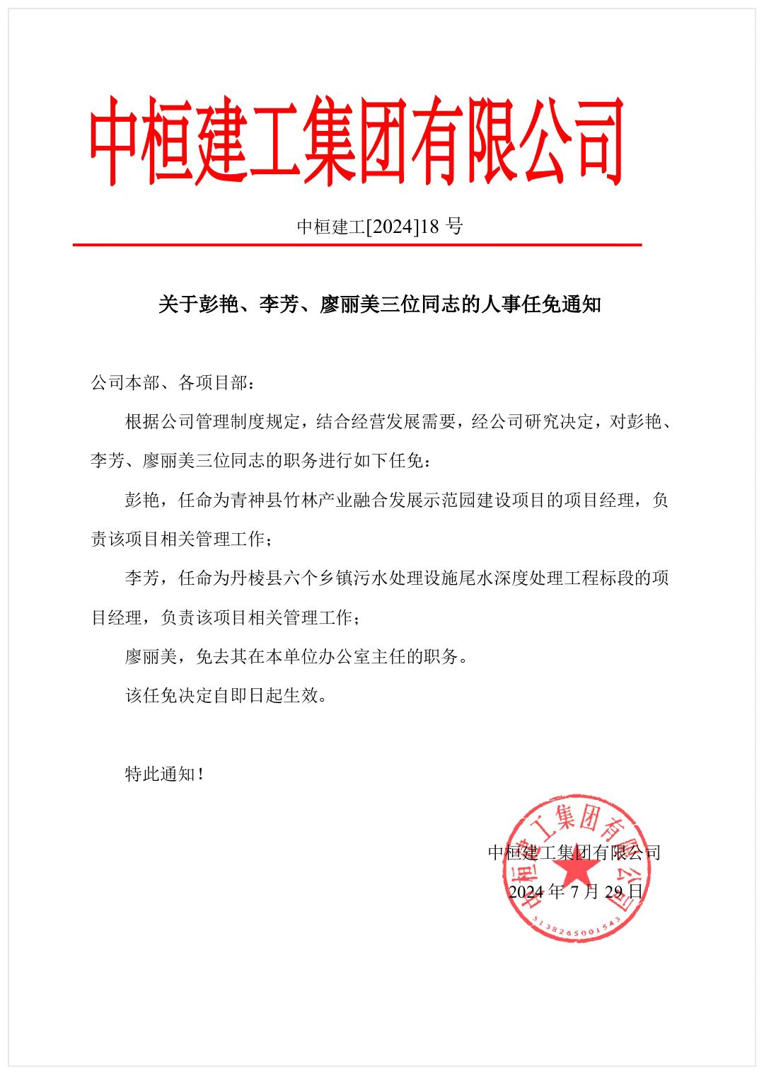 中桓建工集團最新人事任免